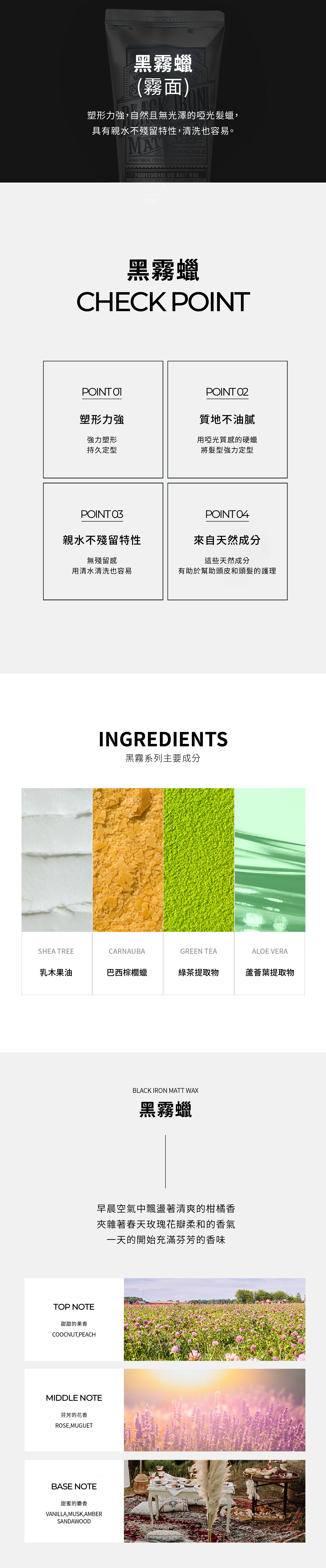 自然且無光澤的啞光髮蠟,含乳木果油能滋養和定型效果,即使隨著時間的推移也可以重新設計風格,親水不殘留特性,洗去造型也容易。