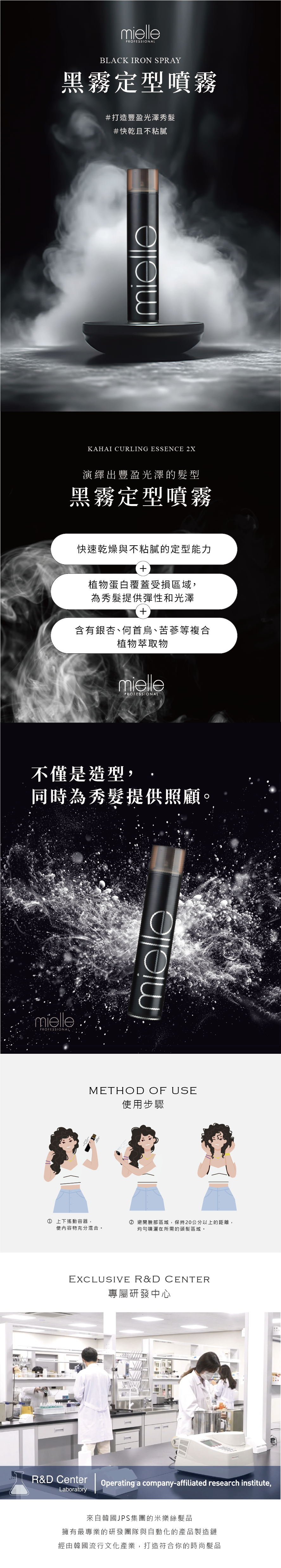 含銀杏、人參、槐花參等複合植物萃取物,適用於打造豐盈的髮型,具有快乾和不黏膩的定型能力,植物蛋白覆蓋受損區域,為秀髮提供彈性和光澤。