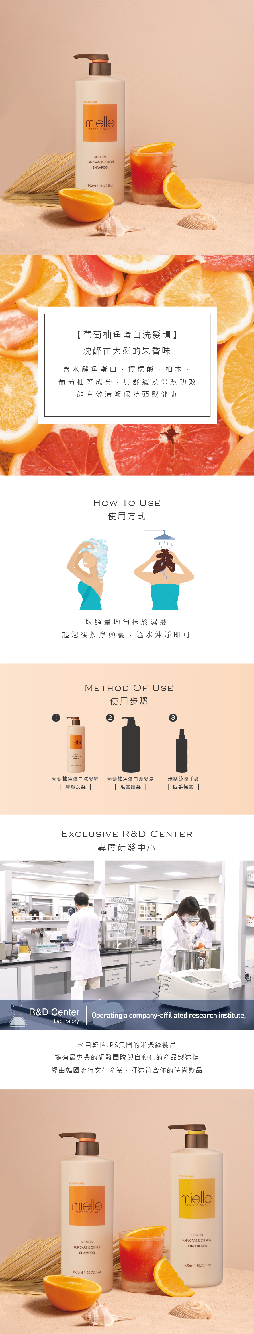 含水解角蛋白、檸檬酸、柏木、葡萄柚等成分,能有效清潔並保持頭髮健康,柏木具舒緩及保濕的功效。