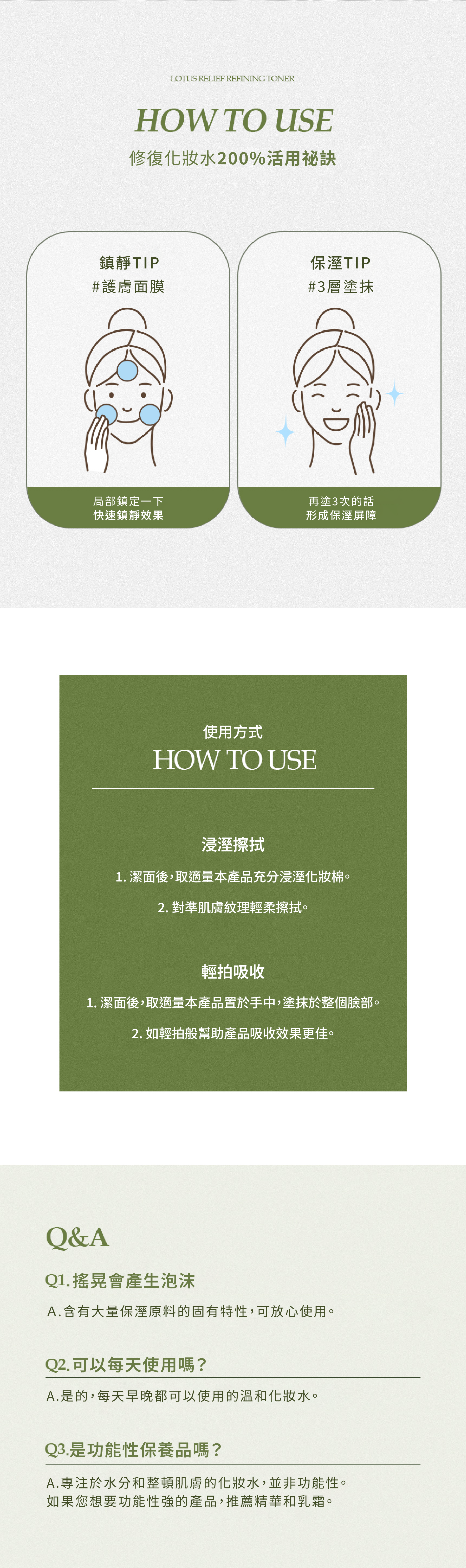 將臉部清潔乾淨,以確保化妝水能夠更好地吸收,將適量的化妝水均勻擦拭在臉部和頸部即可,有效再度清潔肌膚軟化角質,達後續精華液吸收速度提升。