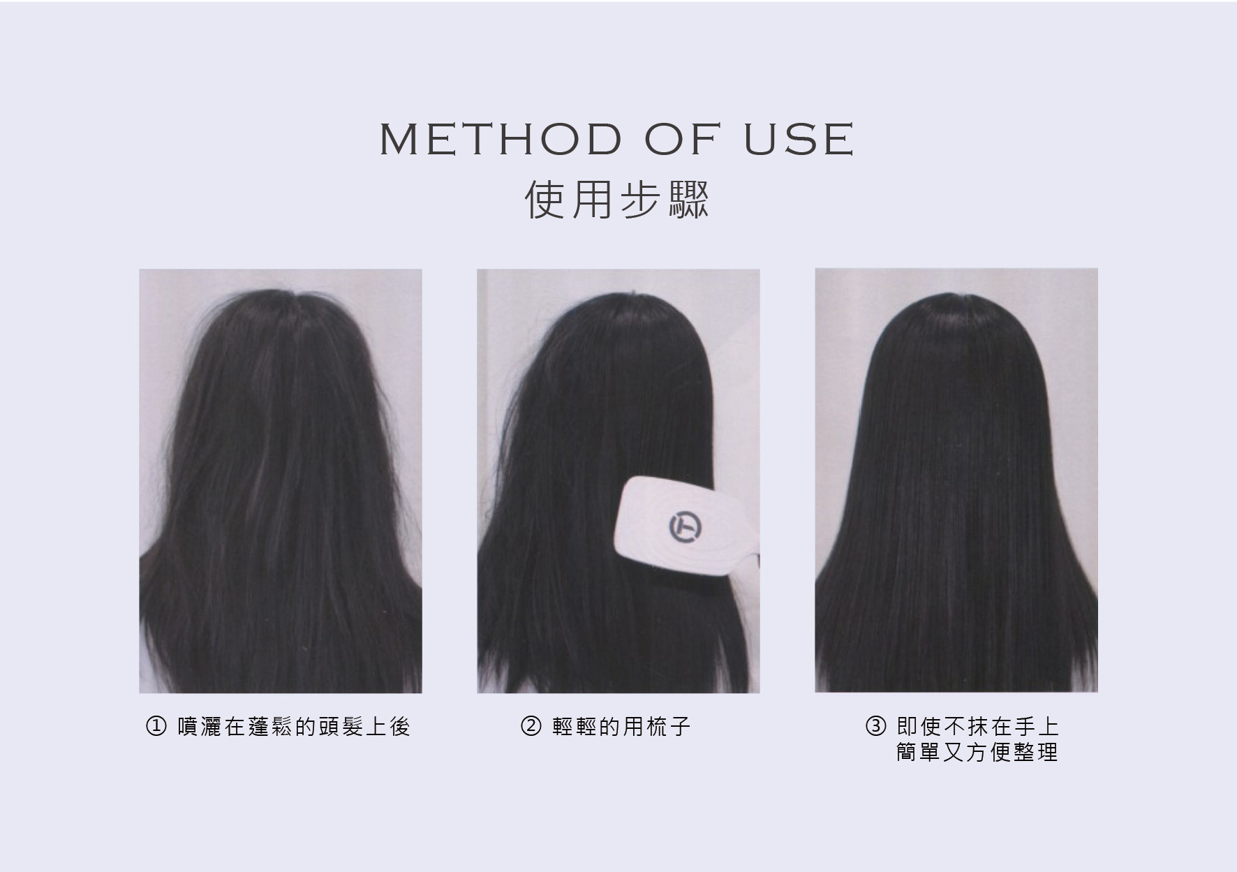 適量噴灑在毛躁髮上,輕輕梳理即可快速吸收。
