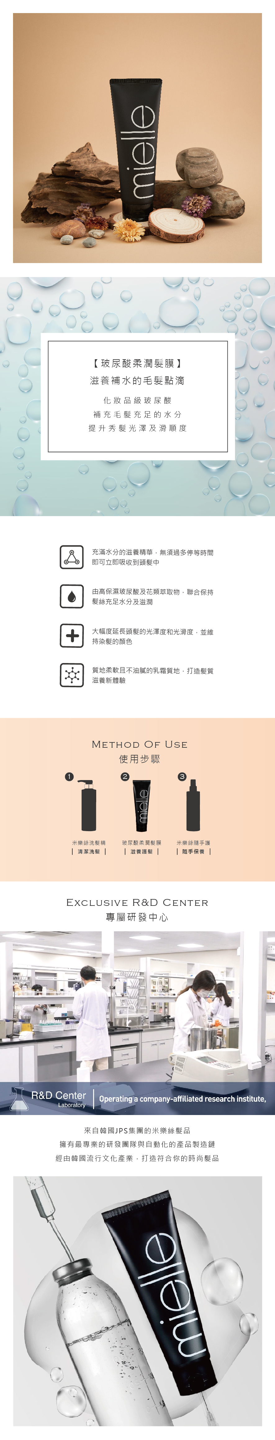 居家護髮產品,含高保濕玻尿酸及花類萃取物,能保持髮絲充足的水分及滋潤,充滿水分的滋養精華,可立即吸收養分,大幅度延長頭髮光澤和滑順度,並維持染髮色彩。