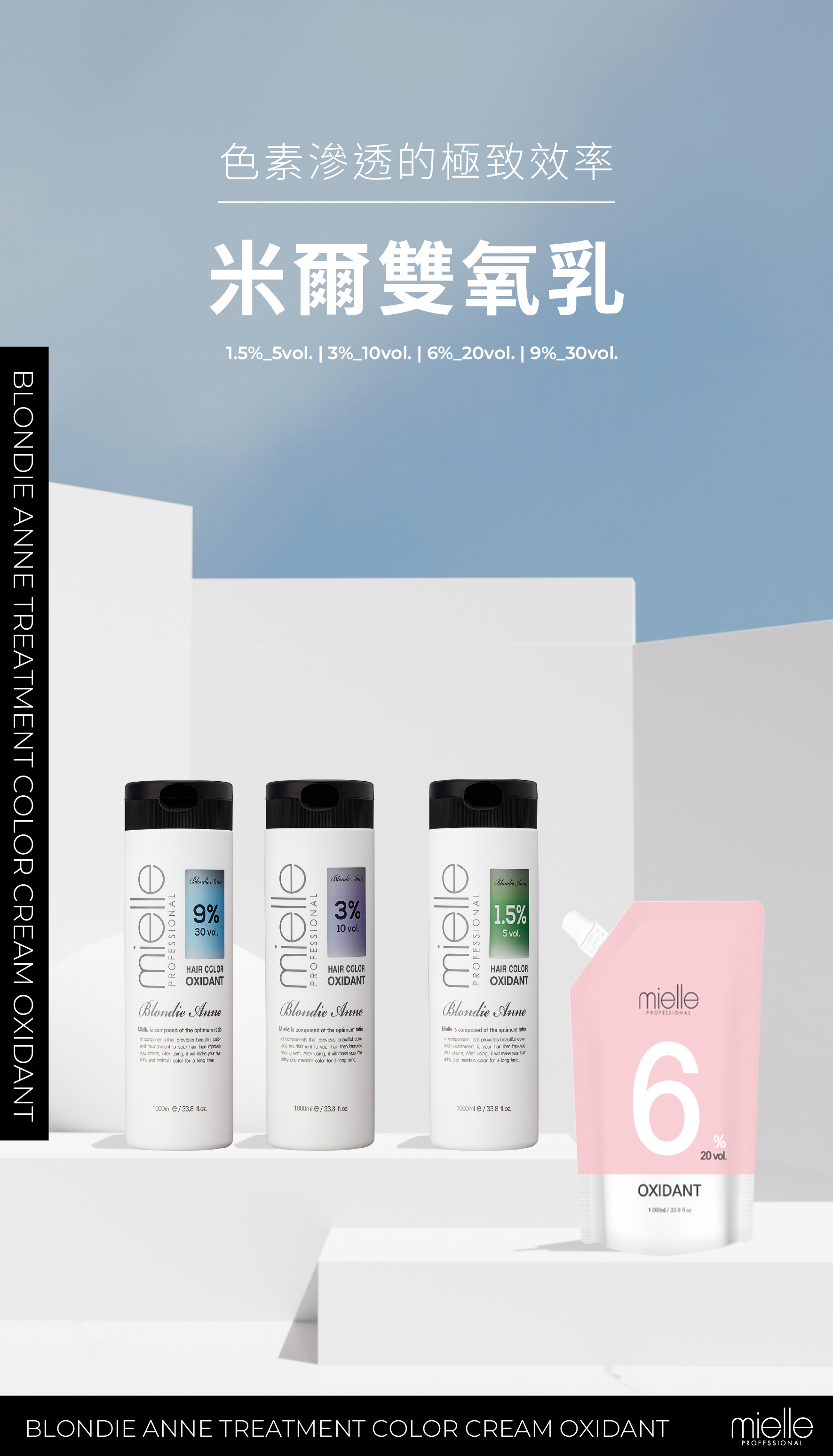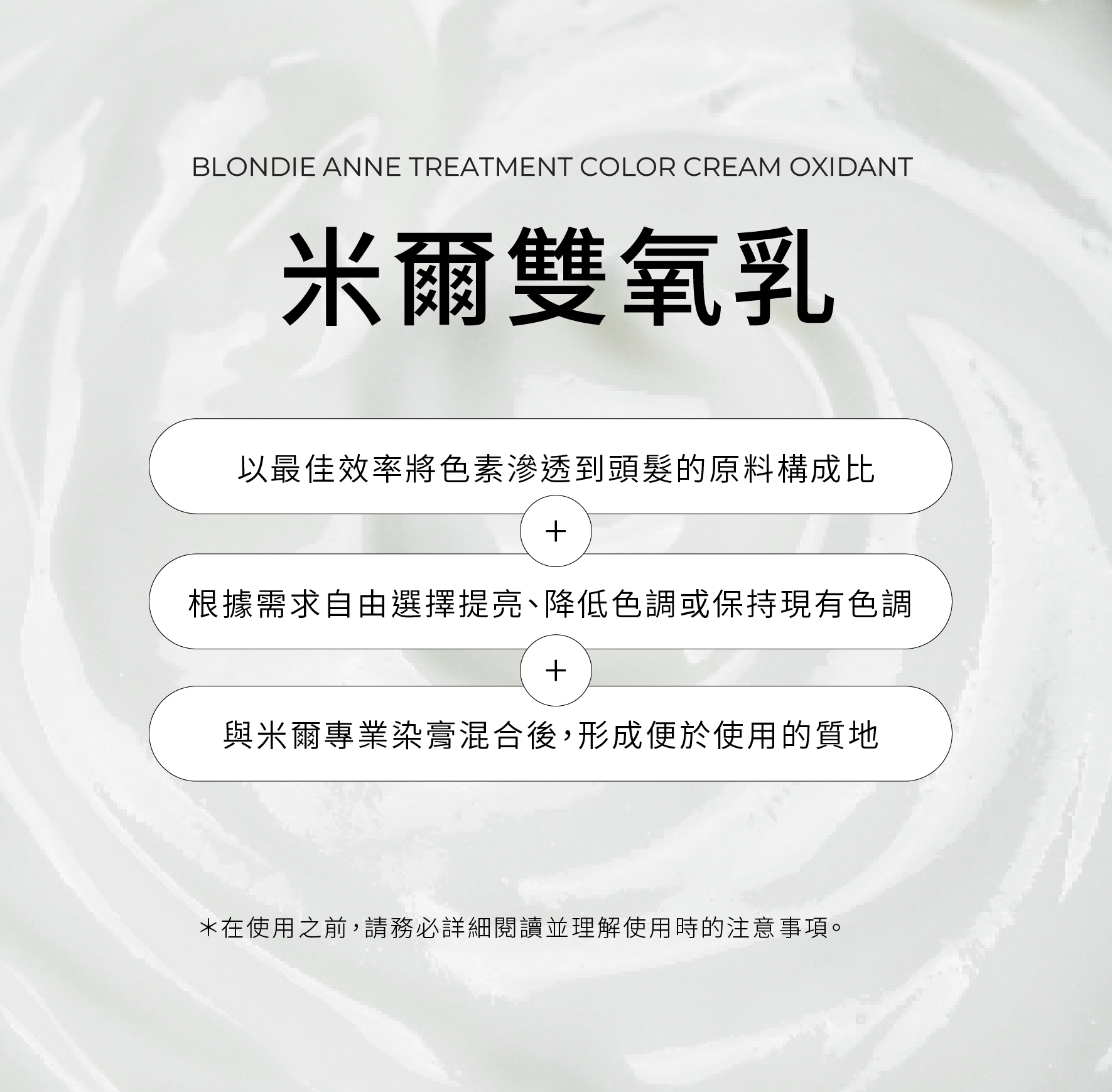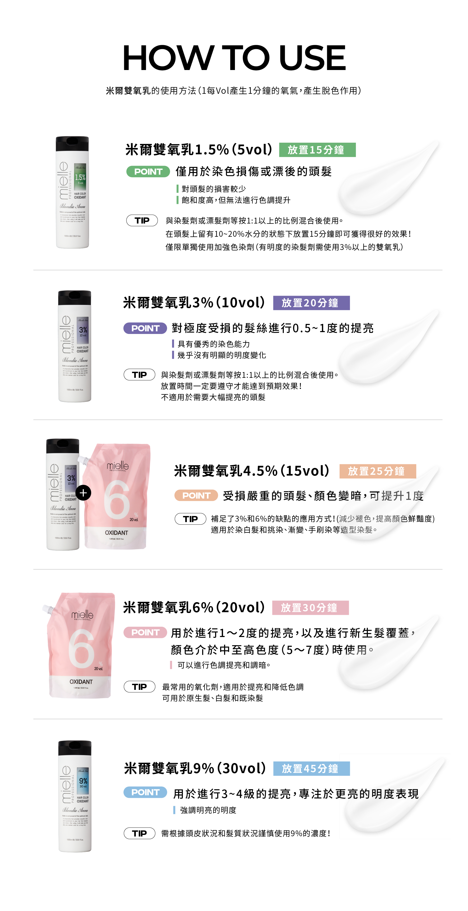 根據毛髮的狀態選擇,與染膏或漂粉以 1:2或以上的比例使用
