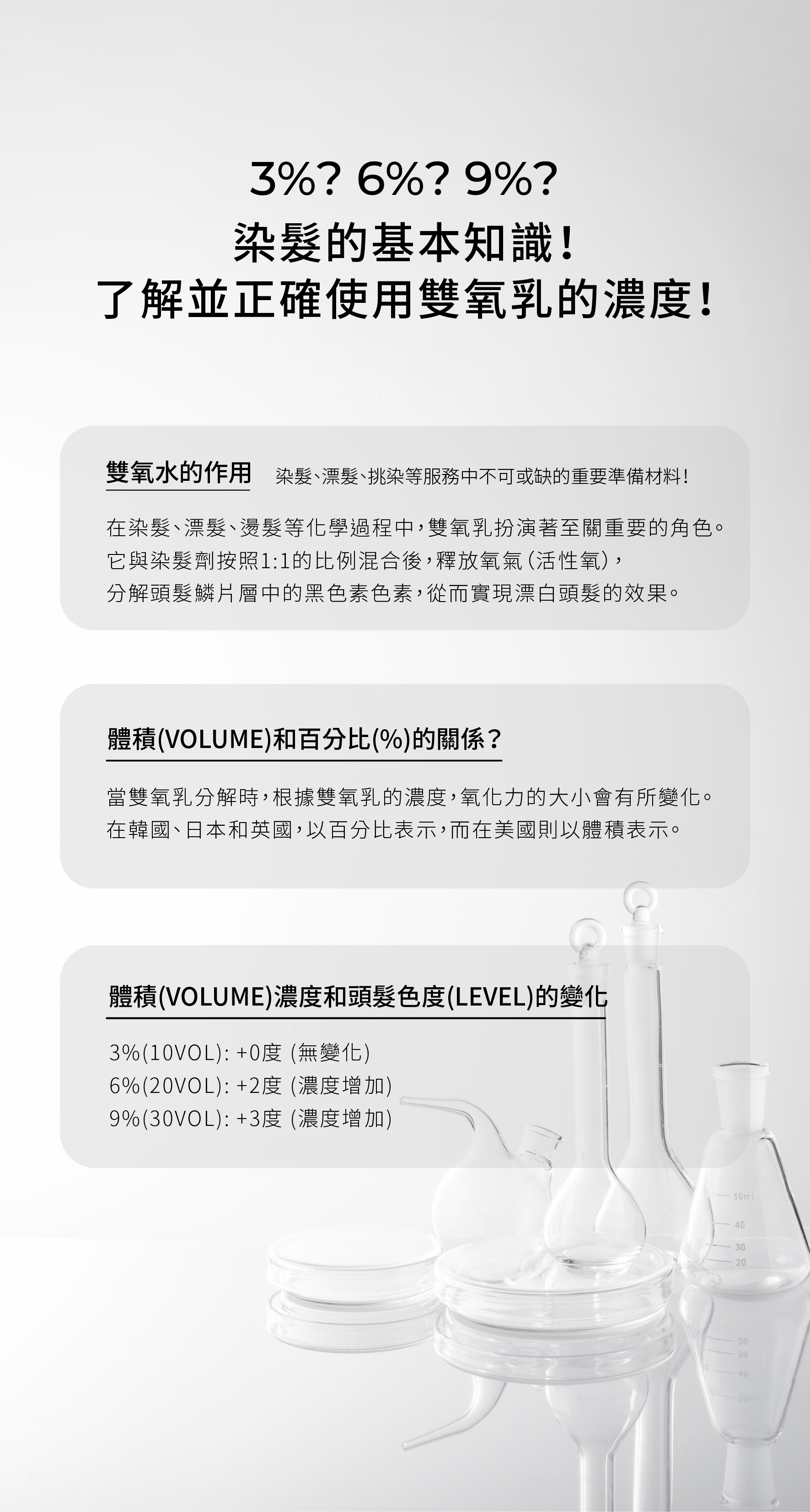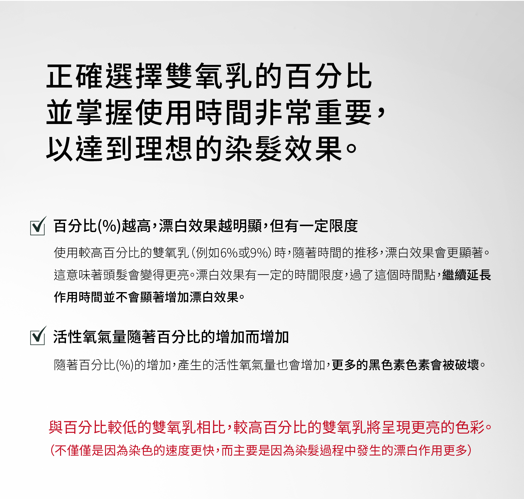 .3% - 用於提亮0.5~1Lv至極度受損髮質