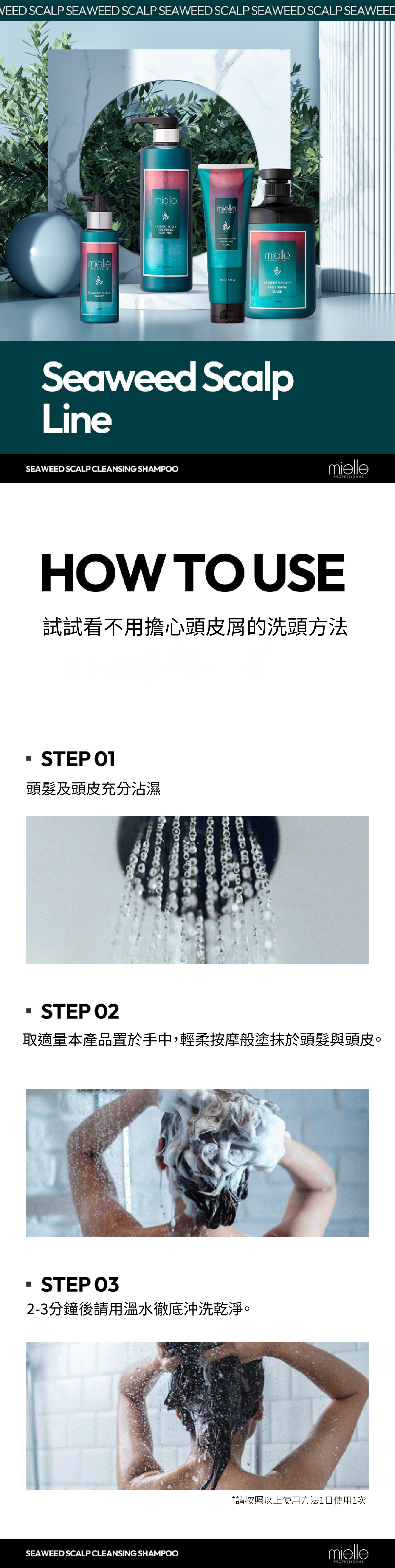 取適量均勻抹於濕髮,起泡後按摩頭髮,溫水沖淨即可,可天天使用。