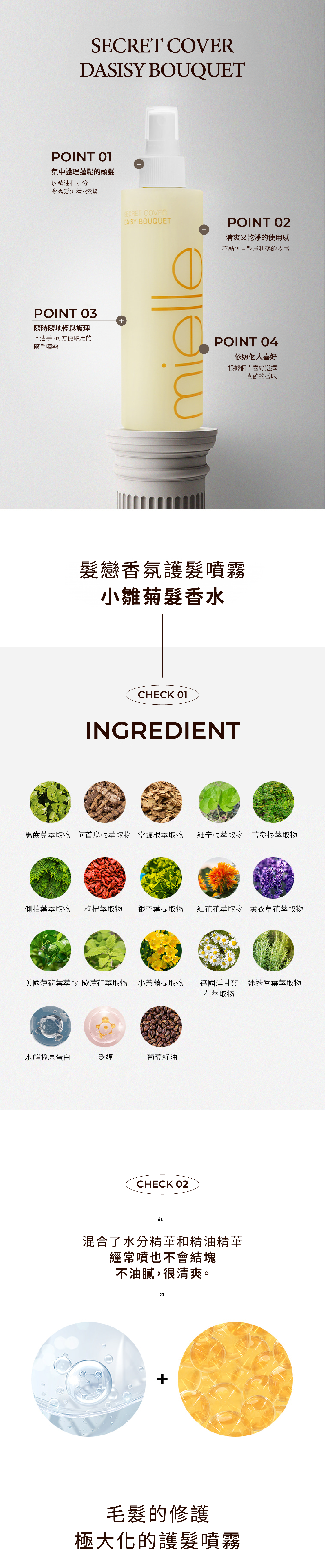 無需沖洗的隨手噴霧,這款護髮香水散發清新柔和的香味,並帶有雛菊香氛,含有助於保護頭髮的植物成分。